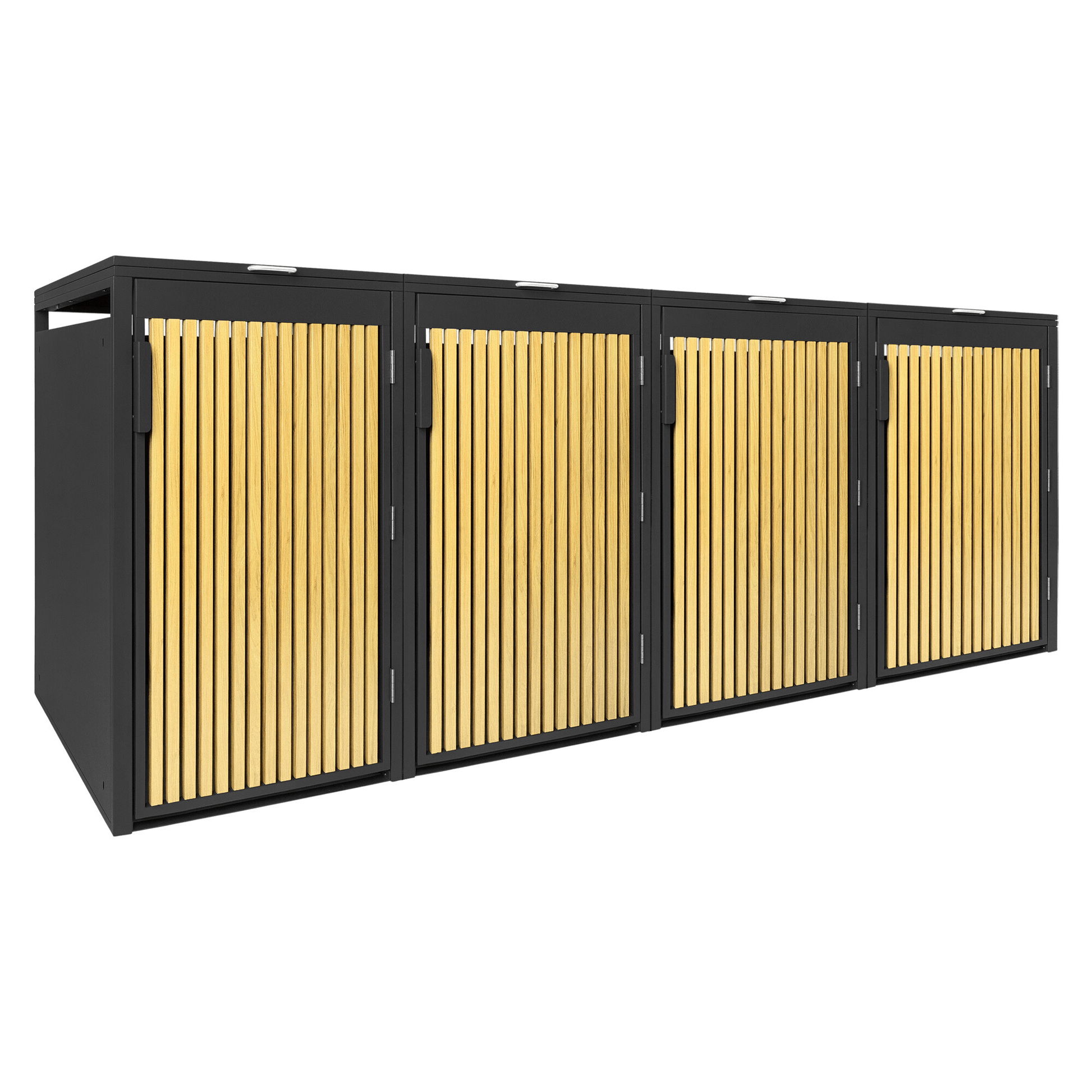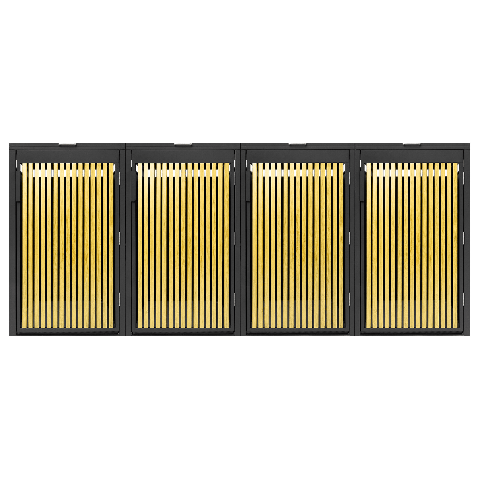 Unsere PANELO 4er Mülltonnenbox mit ihrer exklusiven Holzoptik! Der Blickfang in Ihrem Außenbereich. Ideal für Mülltonnen bis zu 240L.