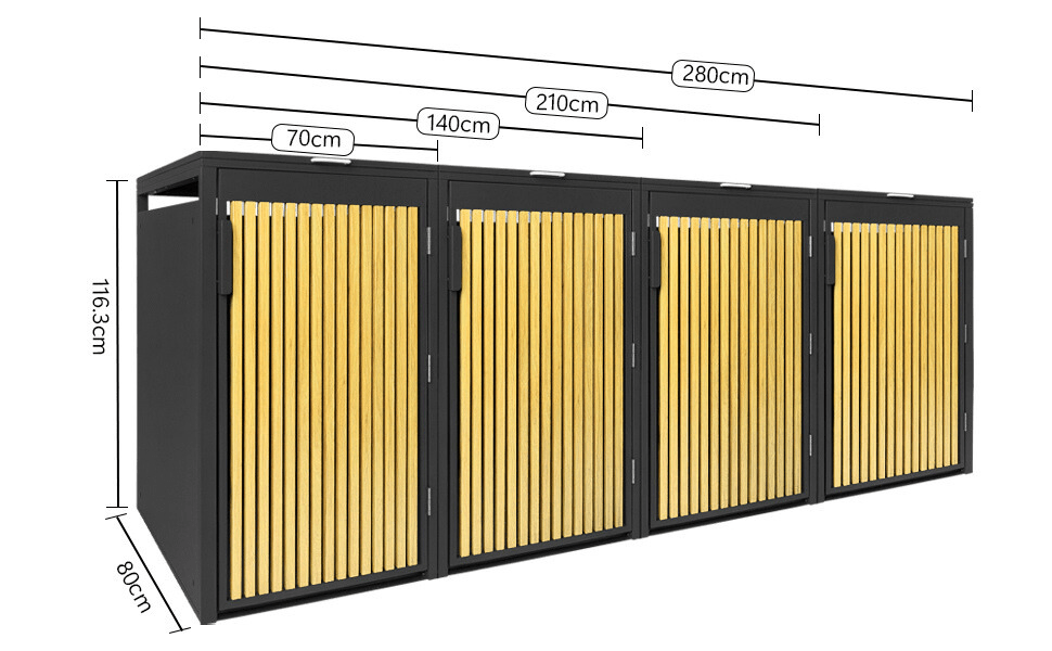 ✅ Langlebig: Hochwertig verzinkter Stahl und eine widerstandsfähige Pulverbeschichtung liefern die ideale Voraussetzung für einen stabilen Mülltonnenunterstand.
